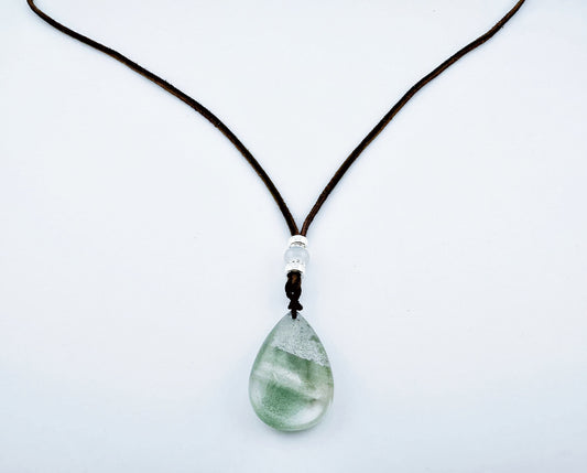 【珍品限定】天然幽靈水滴吊墜項鍊-青巒