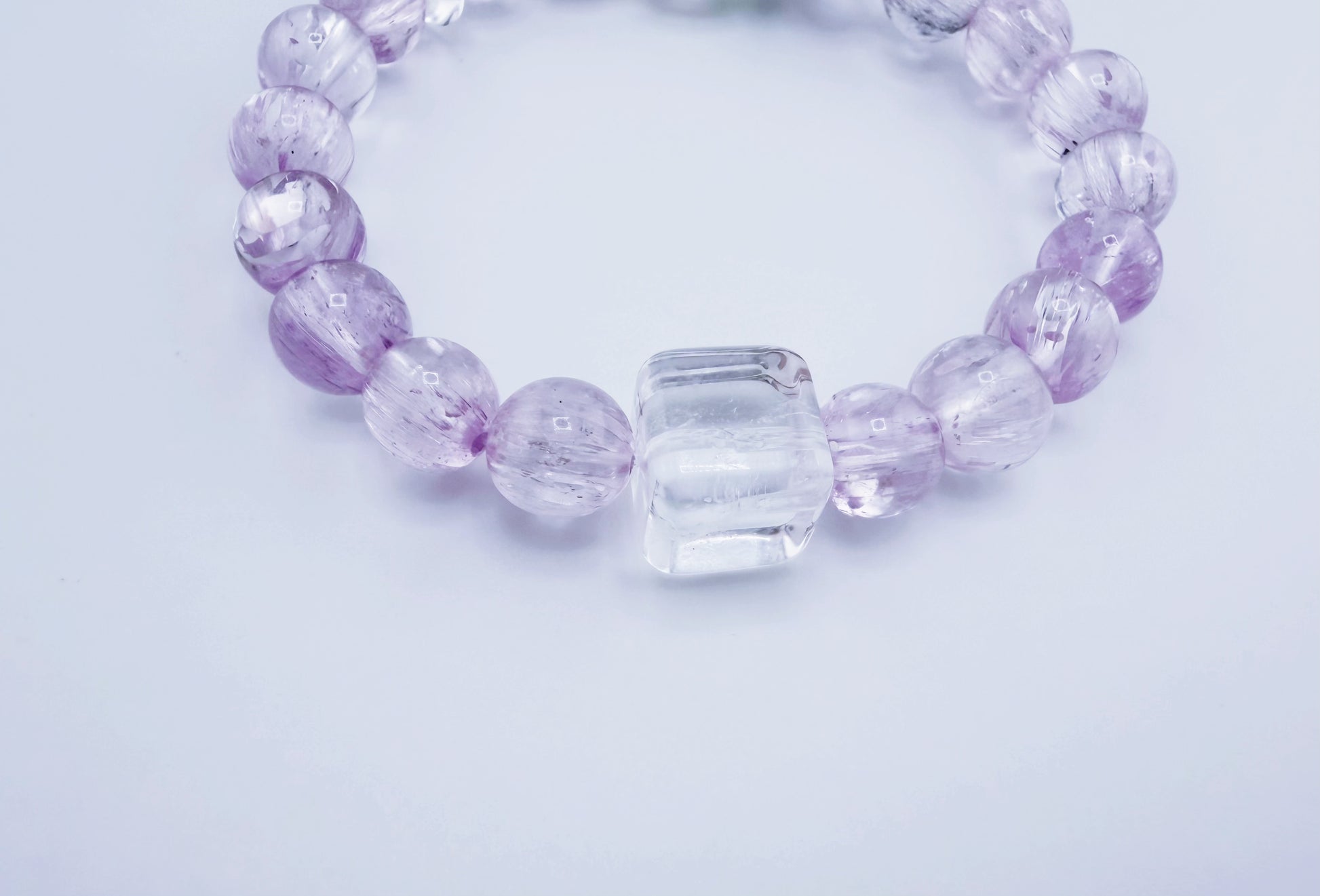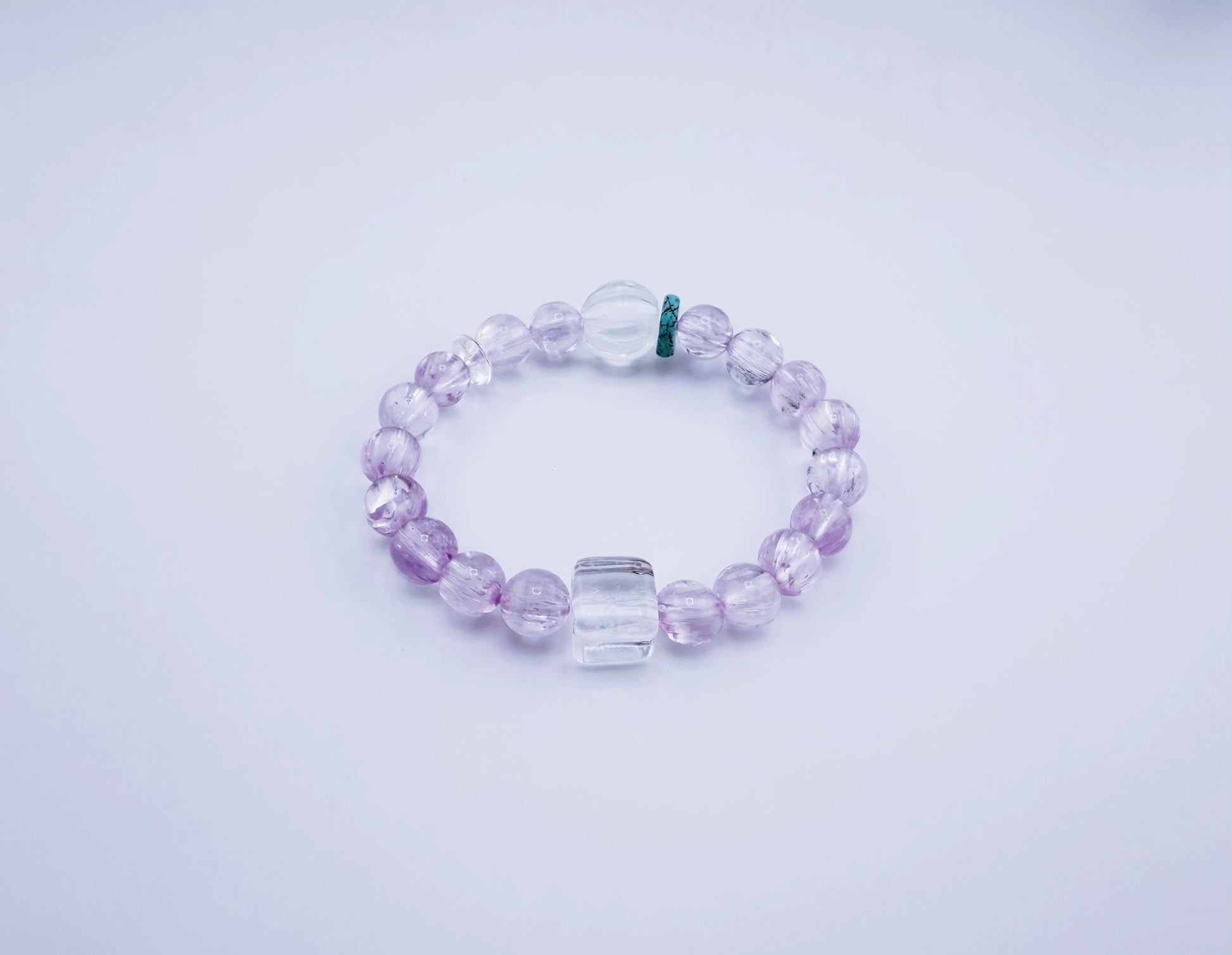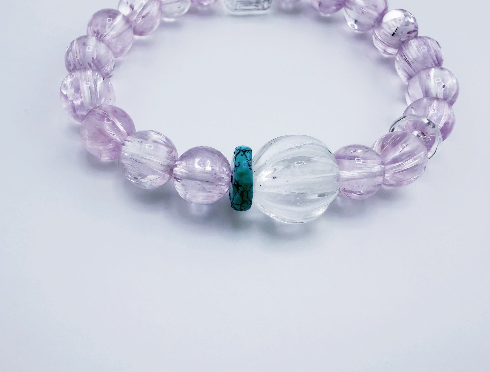 冰種拉絲透體紫鋰輝/白水晶螺紋珠/白方糖水晶/綠松石隔珠/白水晶隔珠 |